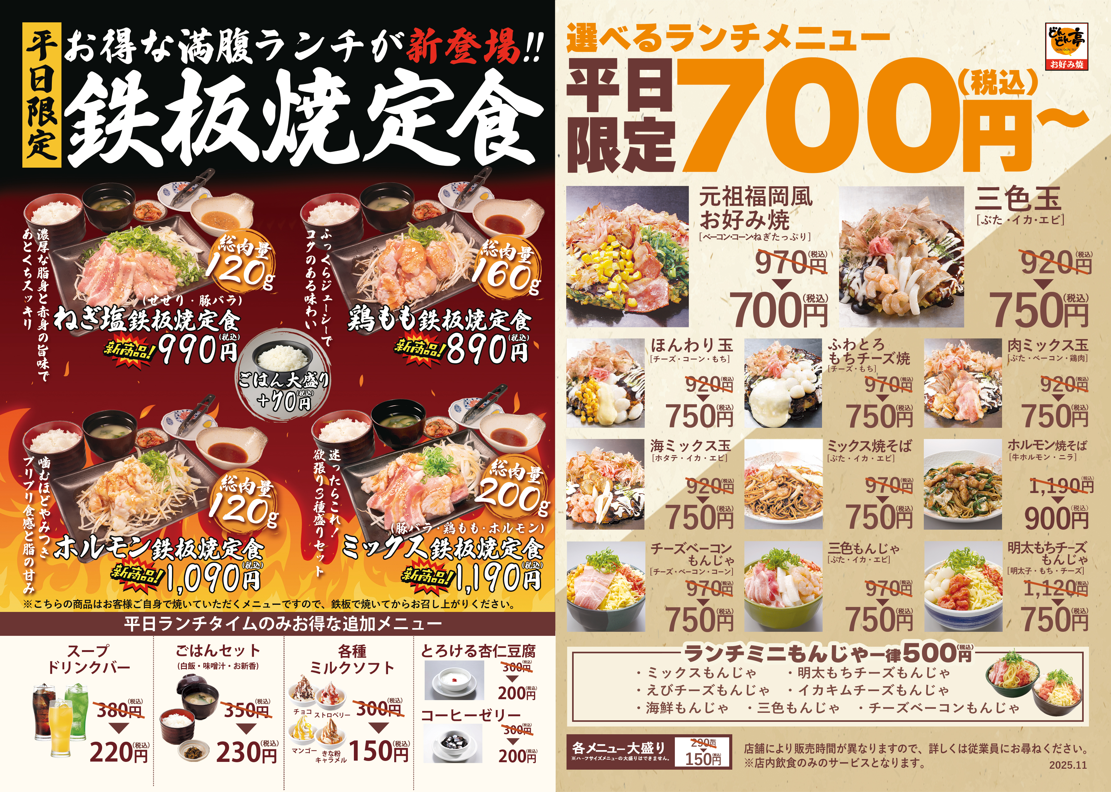 どんどん亭おすすめの期間限定今だけちょっとお得なメニューです