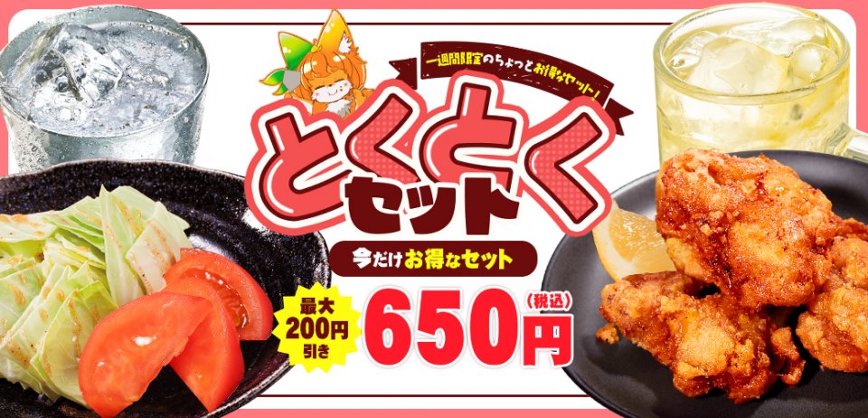 【一週間限定】お得にアルコールとおつまみを楽しめる「とくとくセット」開始