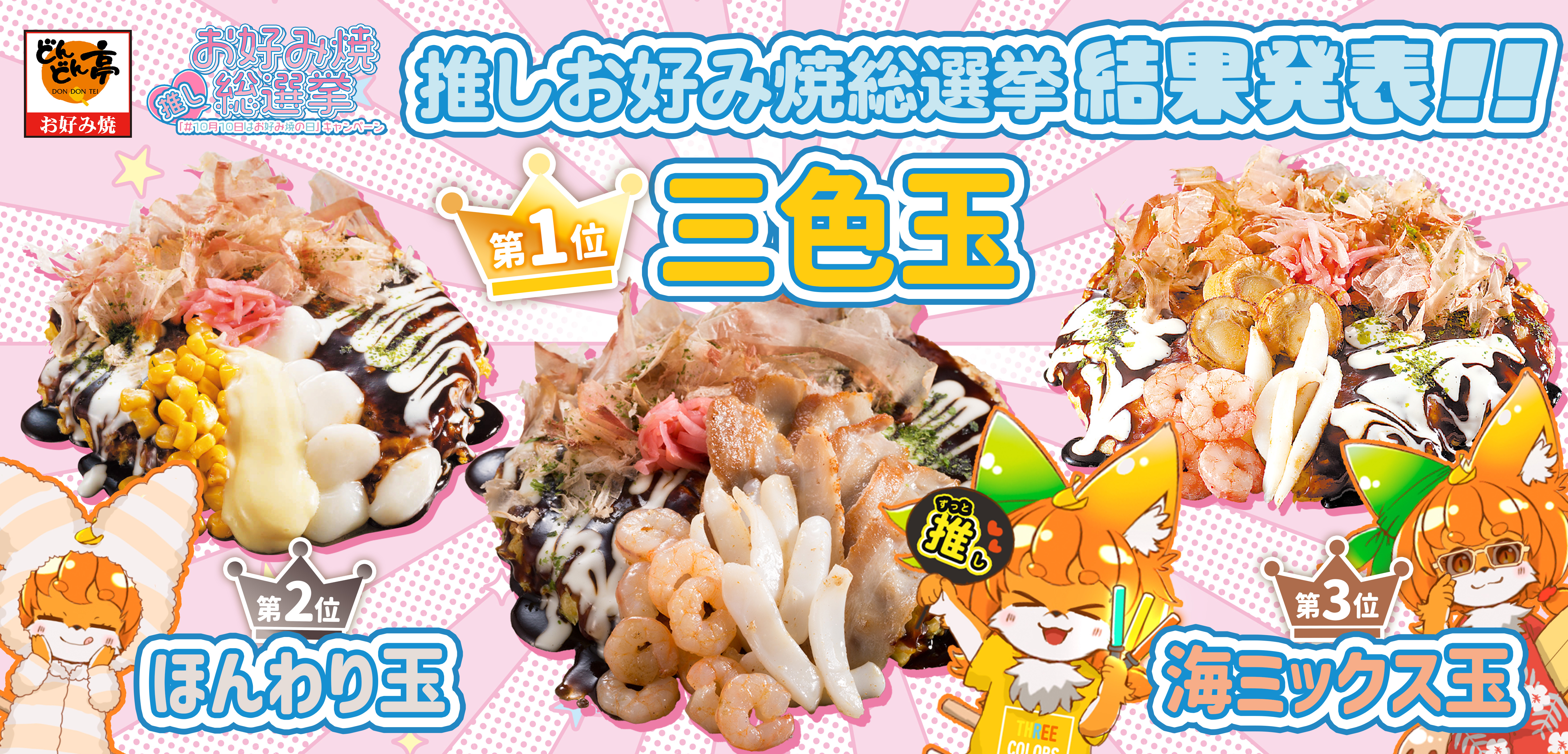 2025年10月1日~31日に開催された「どんどん亭推しお好み焼総選挙2025」に、たくさんのご投票をいただき、誠にありがとうございました!