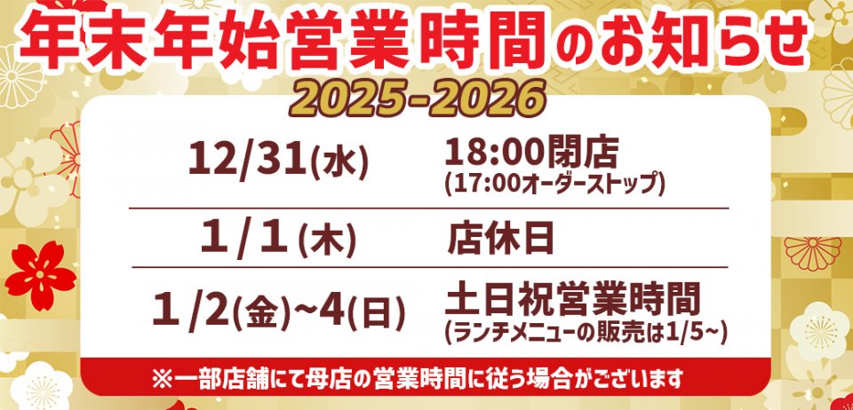 【2025-2026】年末年始の営業時間のお知らせ