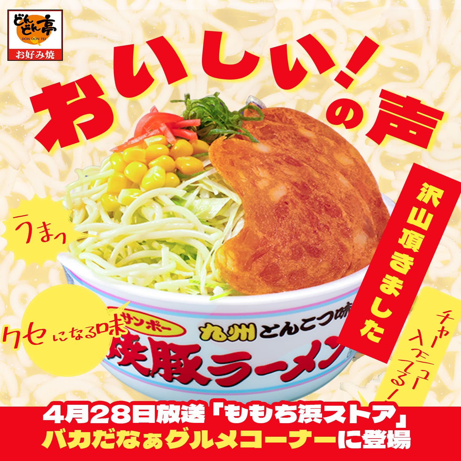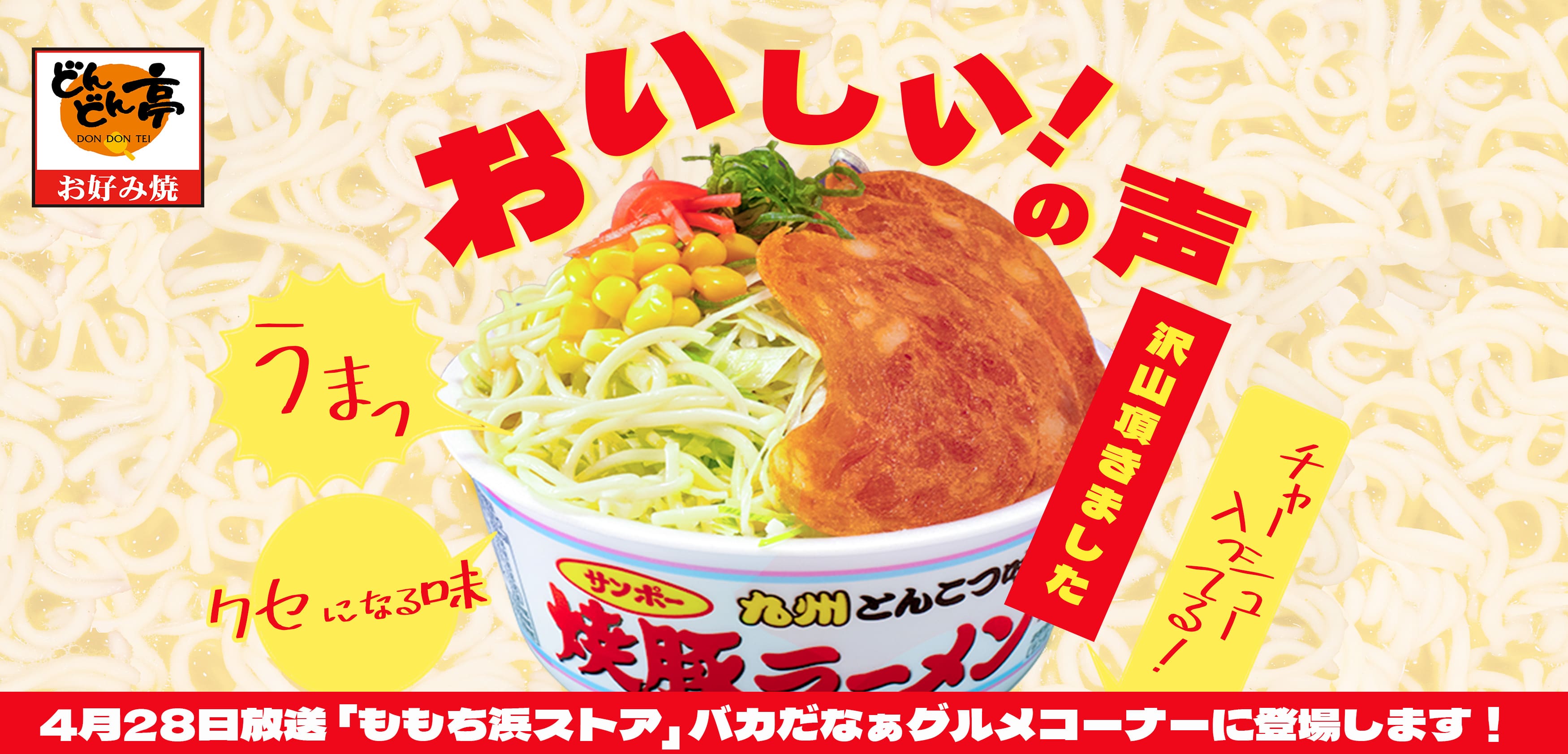 2026年3月11日(水)の発売以降、サンポー食品監修・どんどん亭の「焼豚ラーメンもんじゃ」に、多くの反響が寄せられています。SNSでは「食べた!」「想像以上に美味しい!」「クセになる味!」など、嬉しい声が続々と投稿され、注目度はますます上昇中です。
