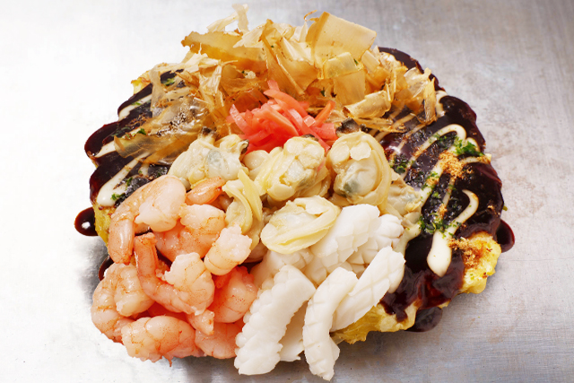 ボリューム、旨み、食べ応え、すべてがワンランク上。海鮮好きの方はもちろん、「今日は一味違ったお好み焼を楽しみたい」という日にもぴったりな一枚です。