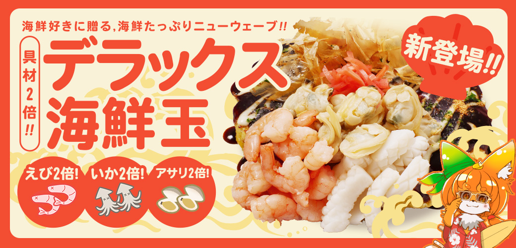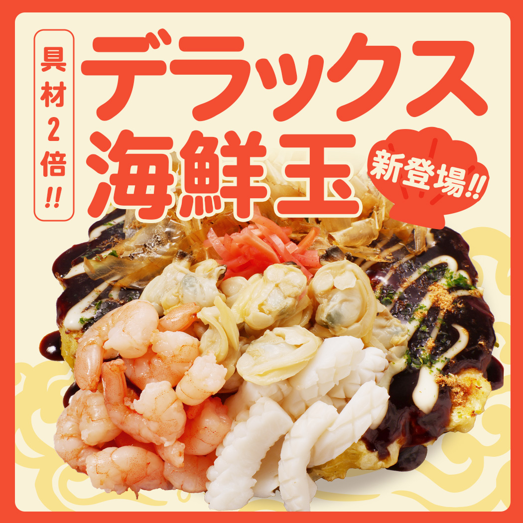 お好み焼専門店どんどん亭から、海鮮の旨みをとことん楽しめる新商品「デラックス海鮮玉」 が登場しました。